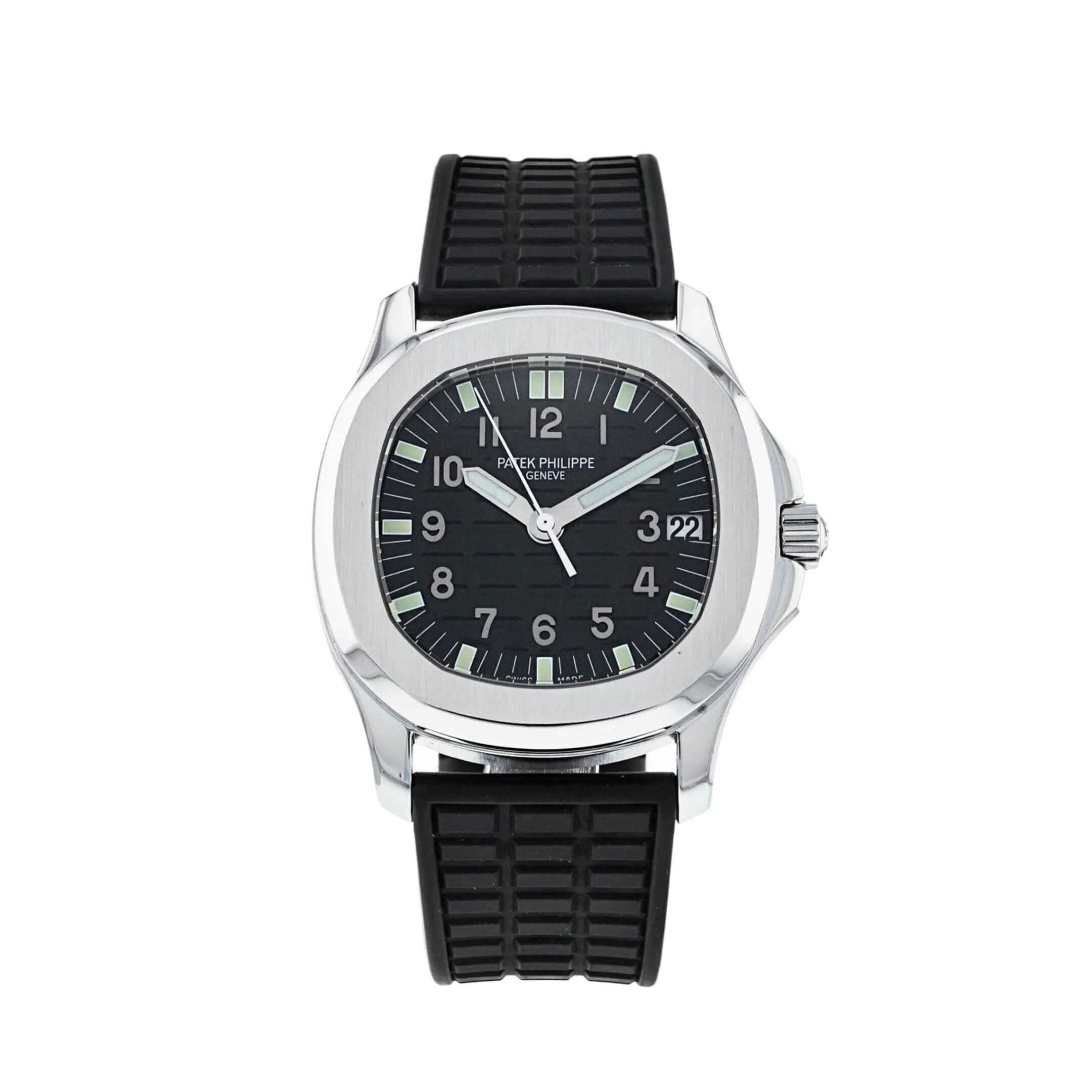 The Patek Philippe 5066A-001 Aquanaut is a sleek and sophisticated timepiece that epitomizes modern elegance. Introduced in the late 1990s. it features a stainless steel case with a distinctive rounded octagonal shape and a black embossed dial. which gives it a sporty yet refined appearance. The watch is powered by the automatic Caliber 330 SC movement and includes a date function at 3 o’clock. Its rubber strap enhances its versatility and comfort. making it suitable for both casual and formal settings. The 5066A-001 is celebrated for its blend of high-end craftsmanship and contemporary design. making it a coveted model among collectors